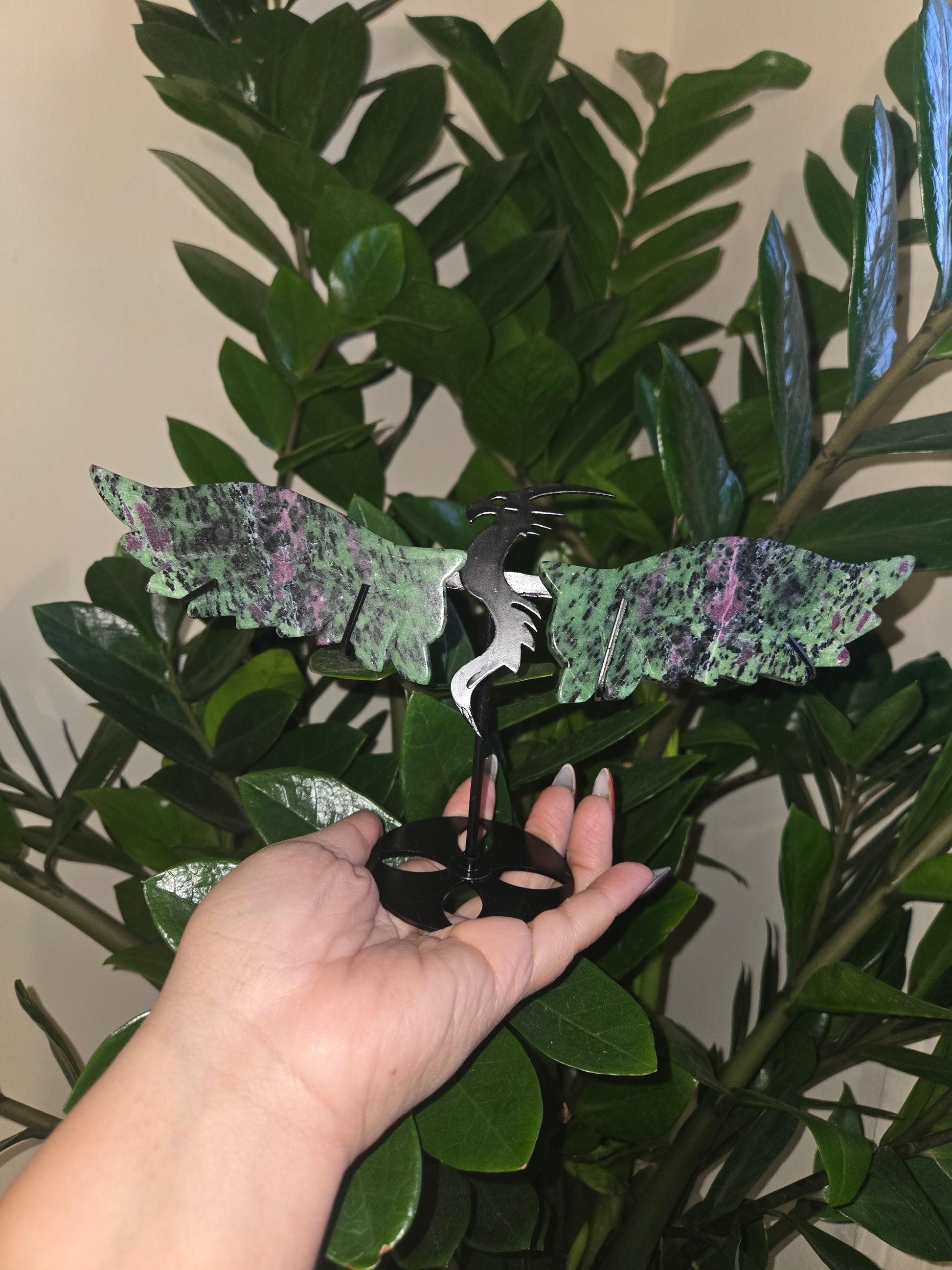 Ruby ignites life force, courage, motivation, and passion—awakening the Root and Heart Chakras—while Zoisite gently transmutes stagnant or suppressed energy into growth, creativity, and emotional healing.
